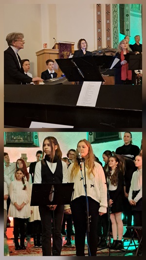 Nach einem stimmungsvollen Treppensingen der Jahrgangsstufen 3 bis 6 zum Jahresausklang folgte wenige Stunden später das festliche Weihnachtskonzert in der vollen wildauer Friedenskirche. Stimmungsvolle Lieder, festliche Klänge stimmten das begeisterte Publikum auf die Weihnachtszeit ein.