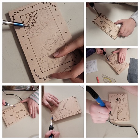 Gestalte und brenne in eine Holz-oder Korkunterlage ein eigenes Bild.